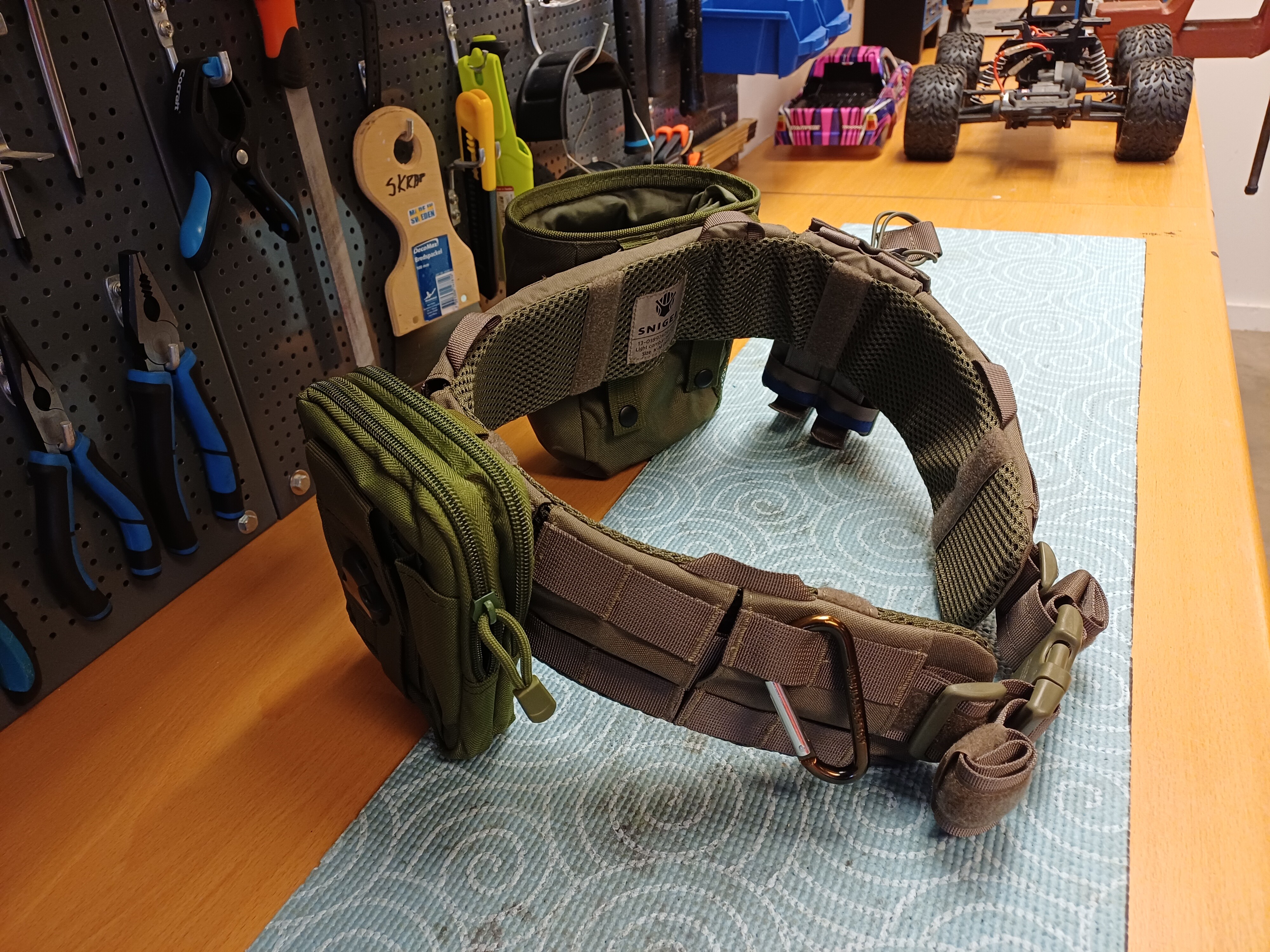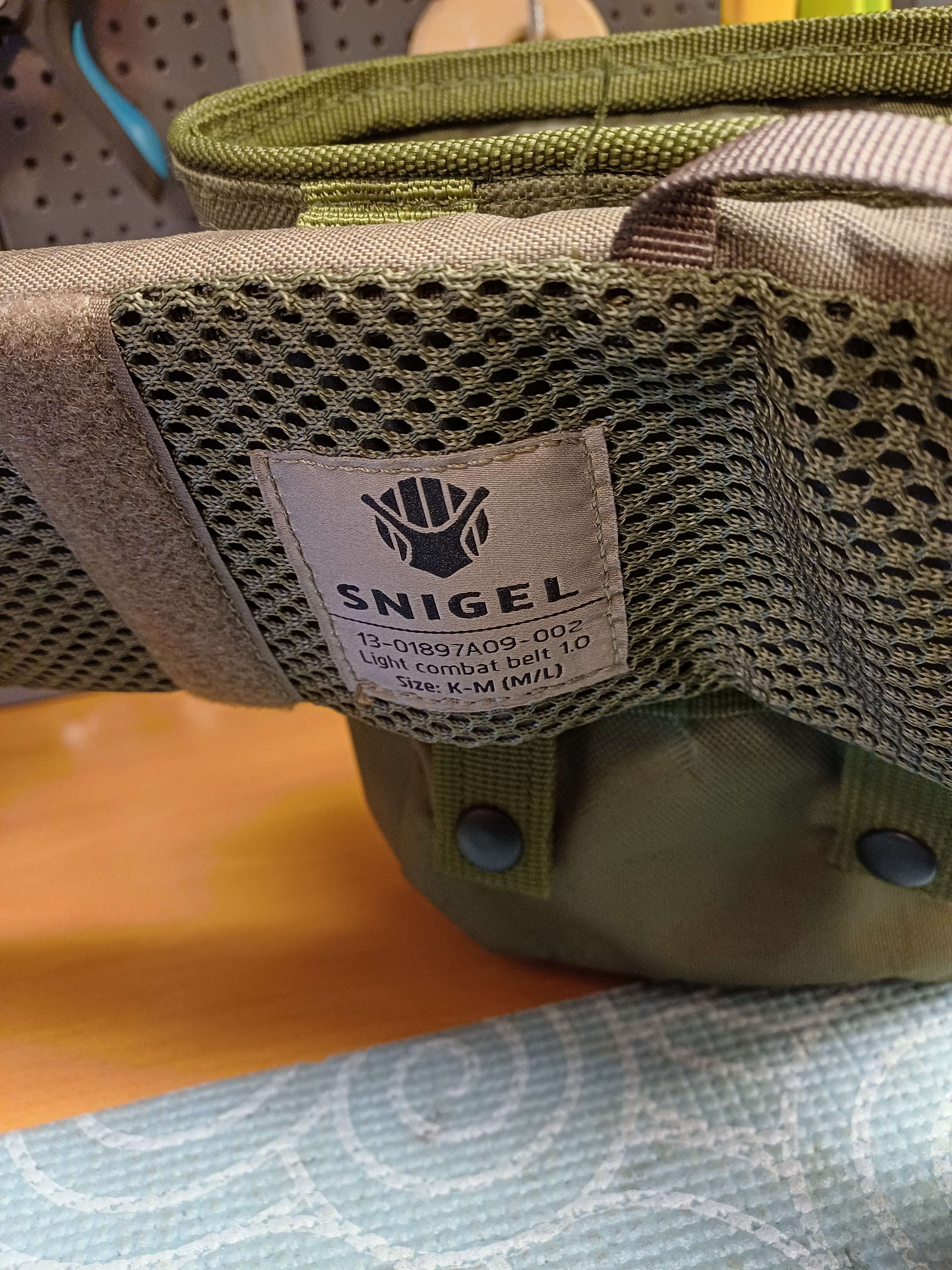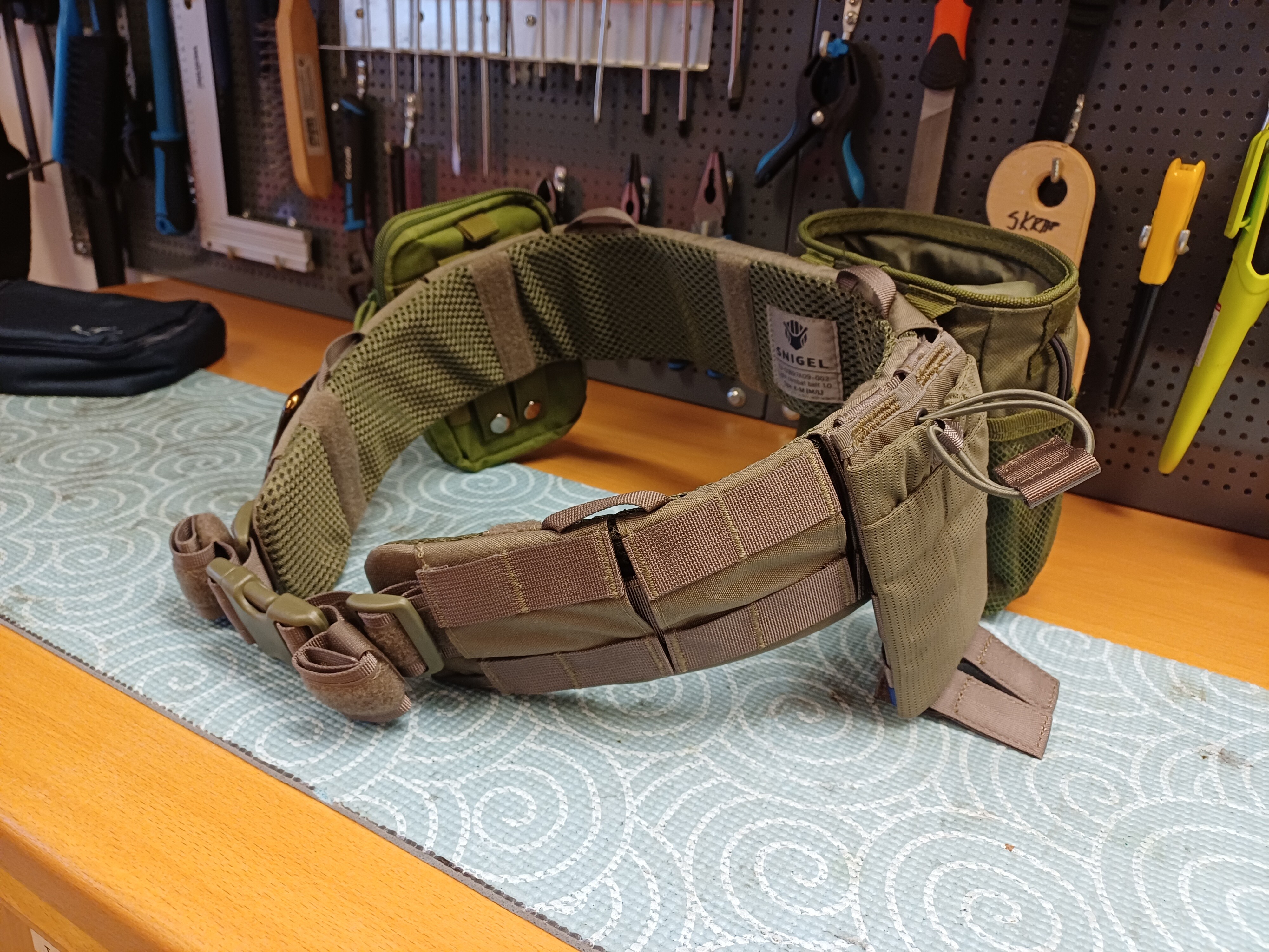 Ett Snigel utrustningsbälte strl M-L och Snigel mjuk magasinsficka samt två kinafickor.