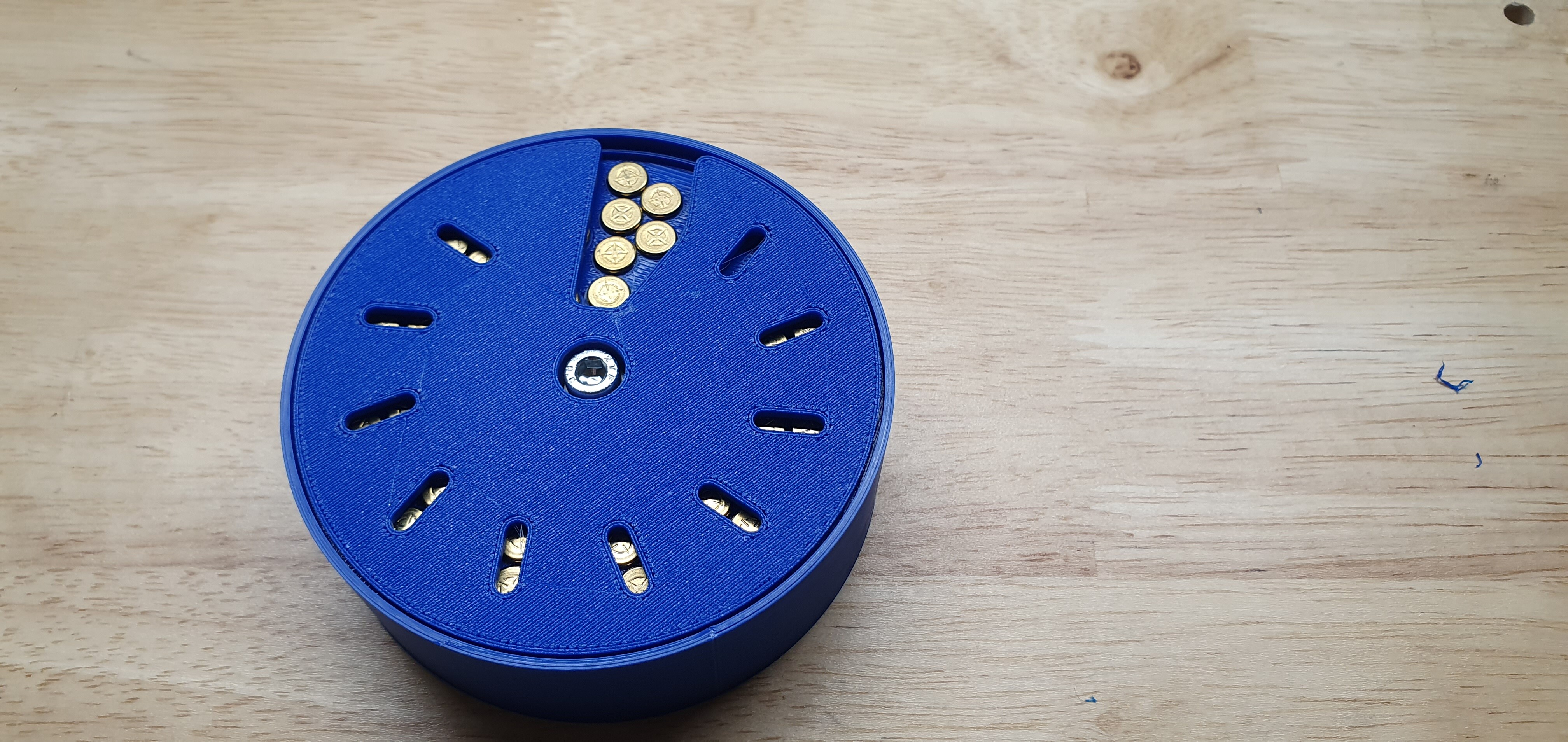 Denna ask har tydliga klicklägen som gör att locket stannar kvar i vald position och inte riskerar att tömma ut skotten i fickan eller väskan.