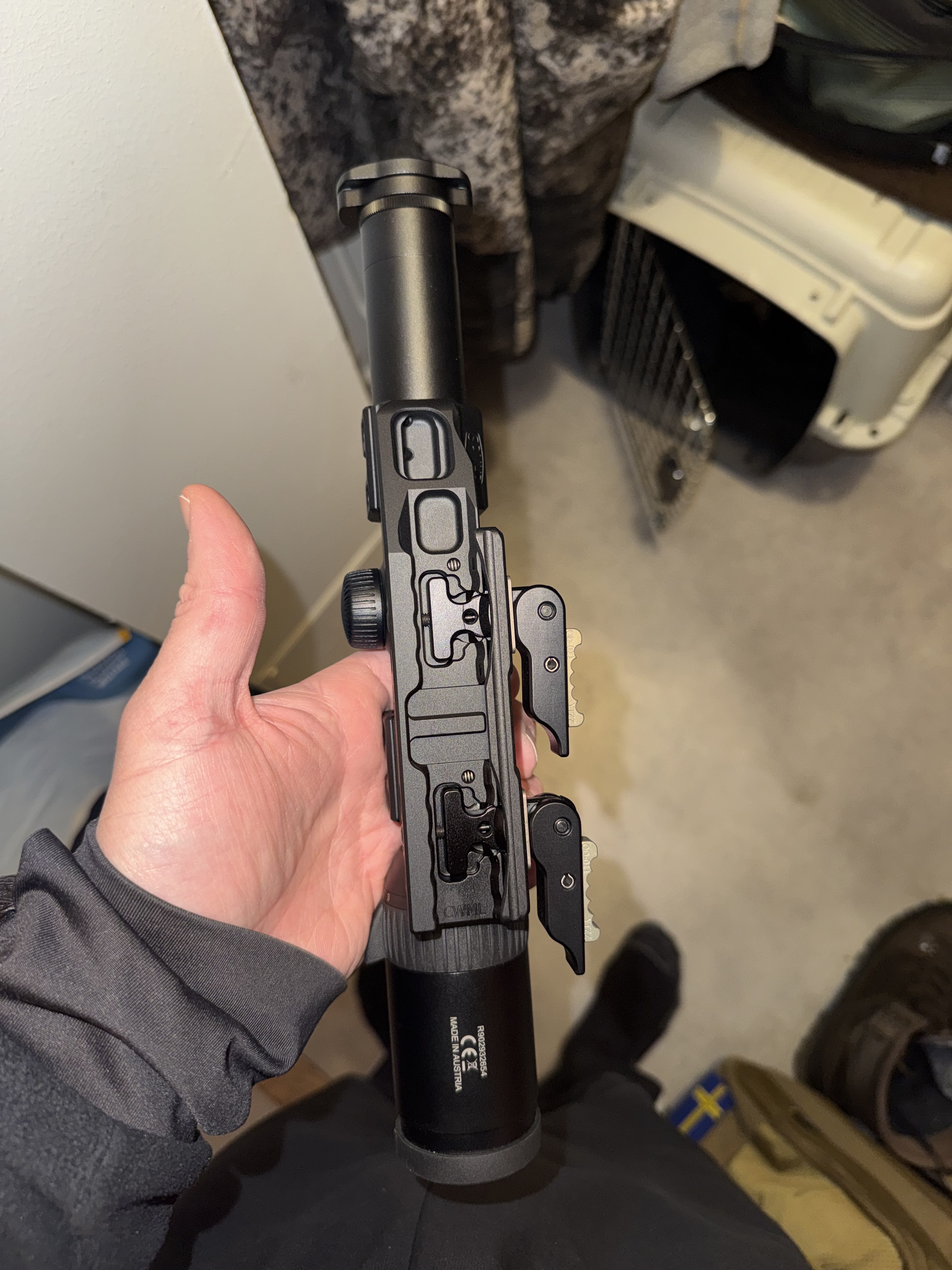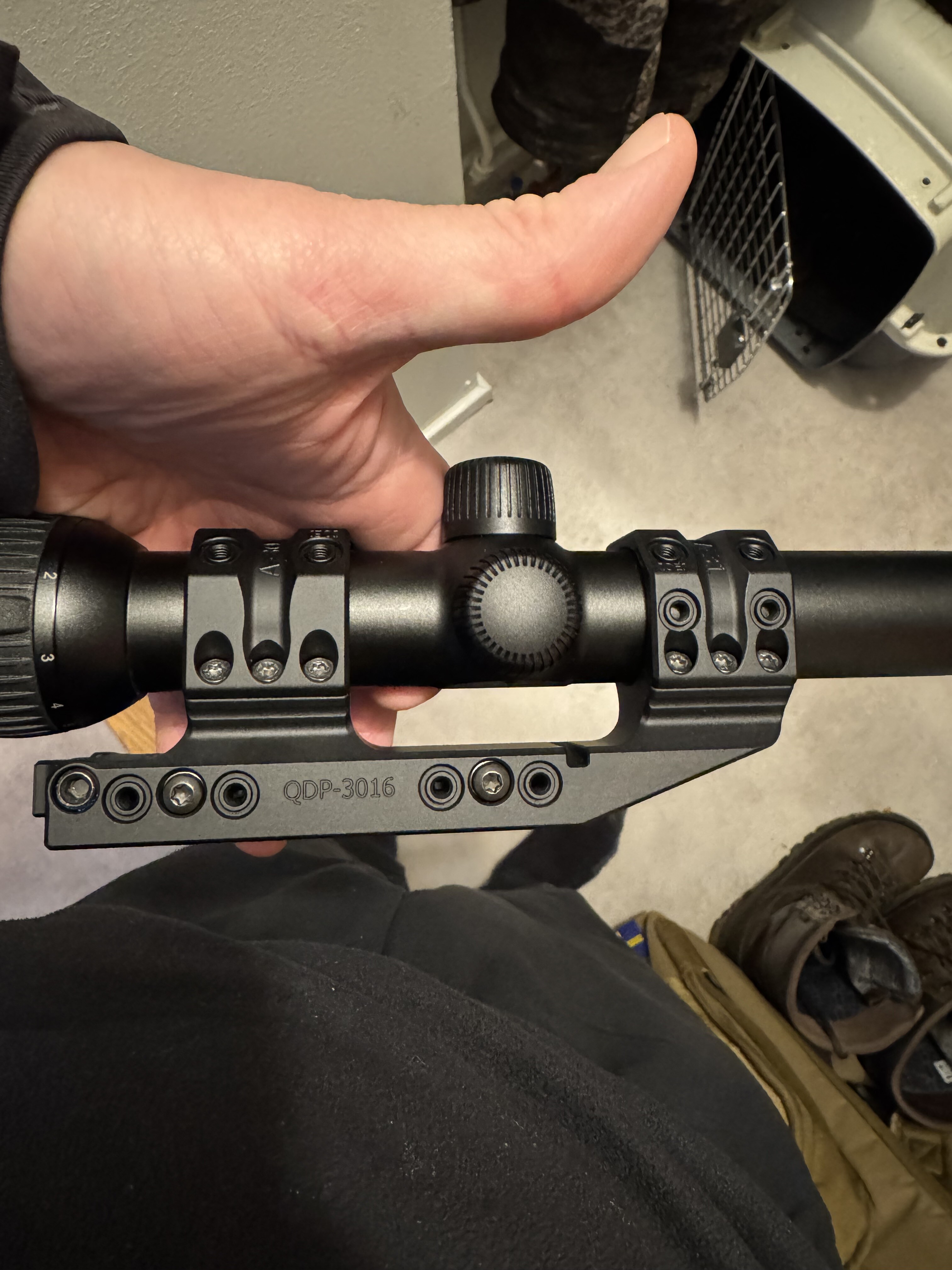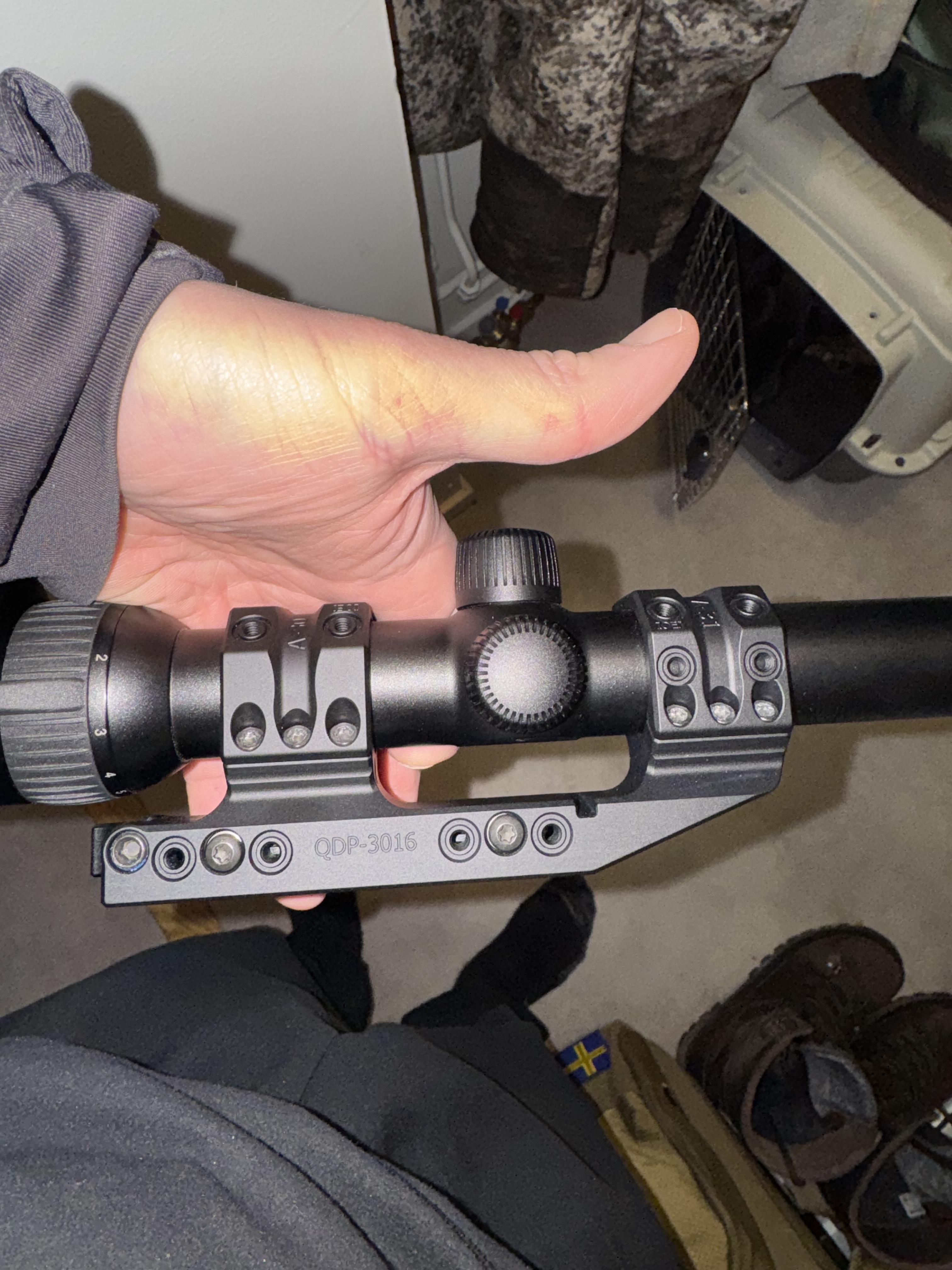 Cantilever kikarfäste med snabbfäste för picatinnyskena och 30mm tub. Speciellt anpassat för att passa på AR plattformen och liknande gevär där man behöver få fram kikarsiktet lite längre än vad skenan räcker till.