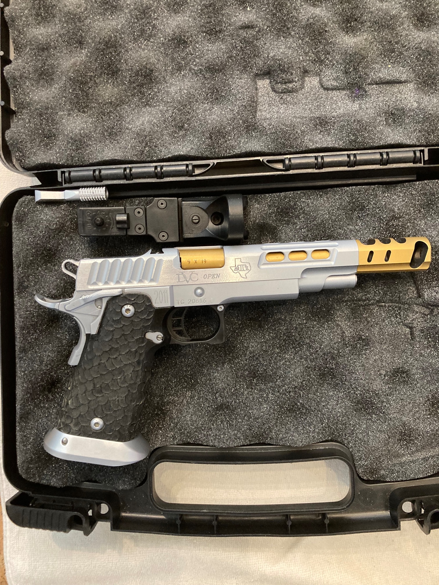 säljer min STI DVC 9mm open pang med C-more sikte som är som ny - skjutna max 1500 skott , vidare 2 långa och 3 korta magasin, Double Alfa rygg med 3st mag hållare och magnet + DA hålster.