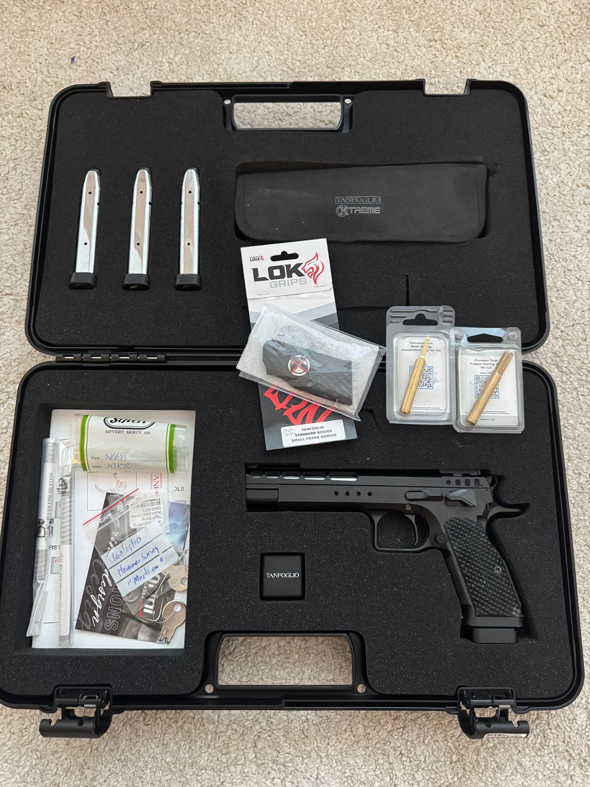 Tanfoglio Gold Match Xtreme Small Frame i kaliber 9x19 i originalväska med samtliga tillbehör. 4 magasin medföljer