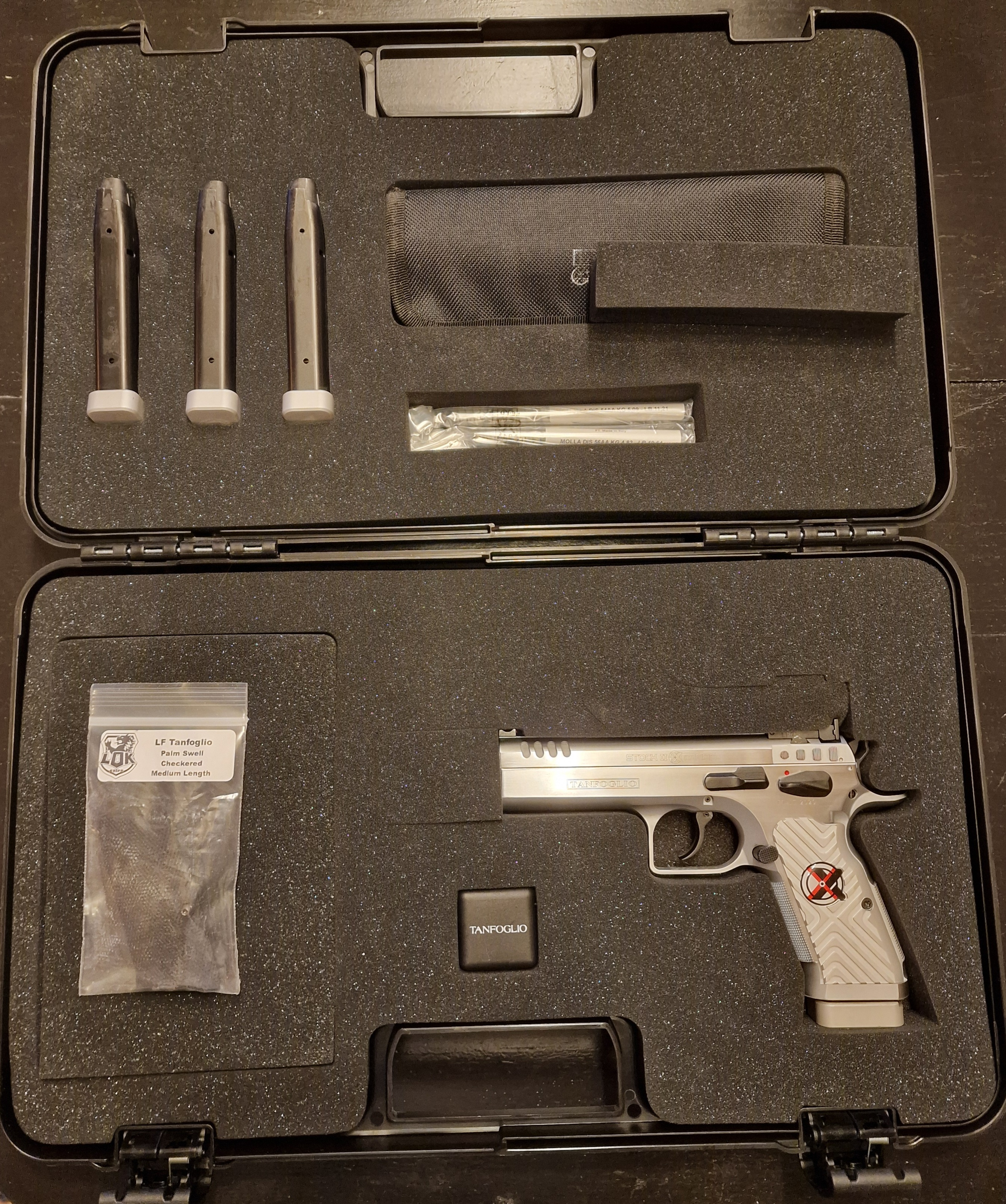 Tips: Säljer min Tanfoglio Stock 2 Extreme LF 9x19 Hard Chrome 2019 som jag köpte ny 2020 hos F&K Sport. Yttermåtten är samma som vanliga SF (Small Frame). En stor fördel med LF (Large Frame) är att den har samma storlek på stomme som kal .40, 10mm och .45 pistoler. Vill man skjuta med annan kaliber så kan man köpa växelsats.Sparsamt använd då tiden för just IPSC-skytte inte räckte till ihop med övrigt skytte.
