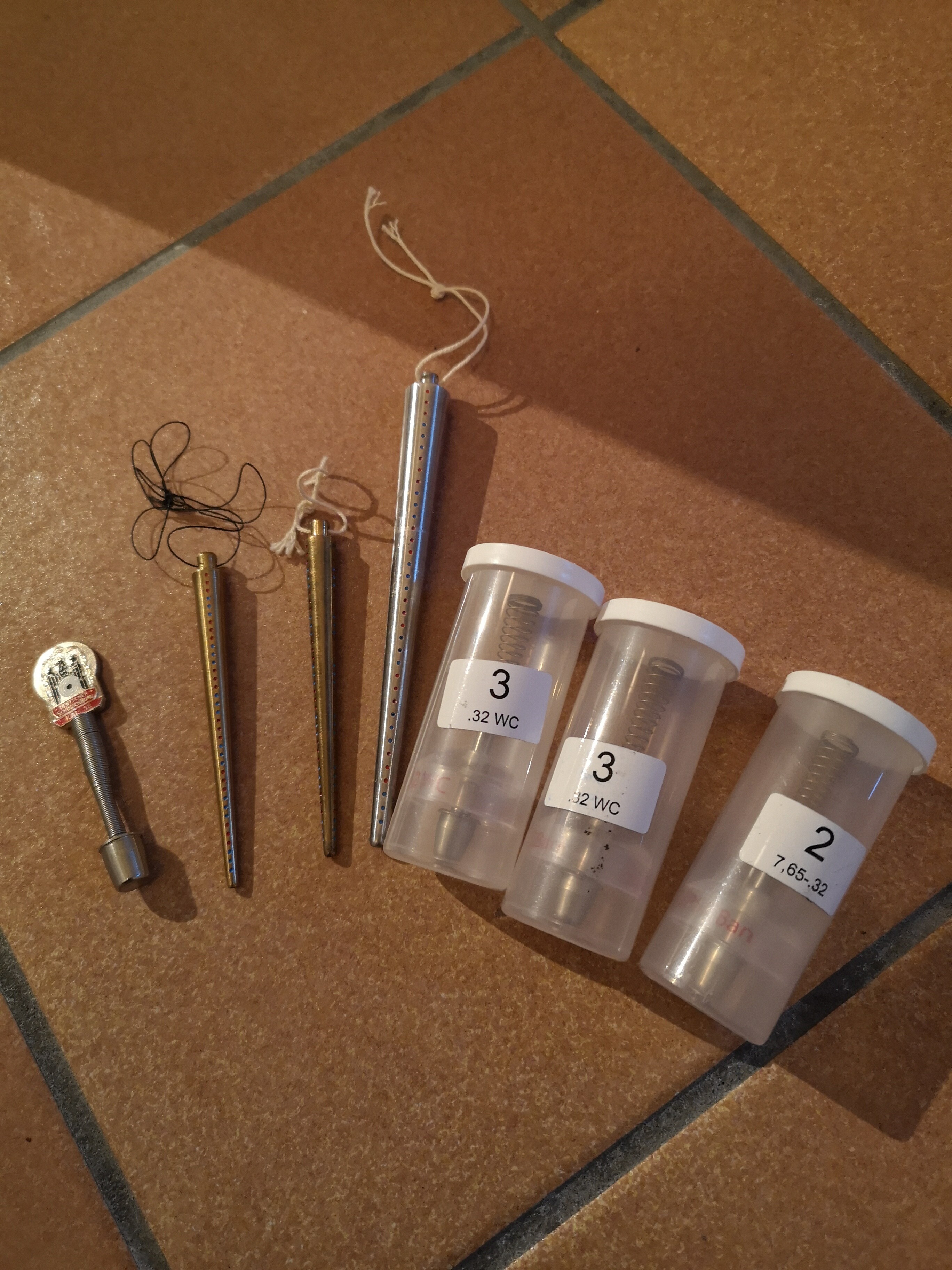 SPSF tolkar ( .32 WC och 7,65/.32) 50 kr st + ev. frakt. SvSF tolk .38 100 kr/st + ev. frakt. Alla fyra tolkarna går iväg för 250 kr inkl. frakt. (Dubbelhålstolkarna är sålda.)