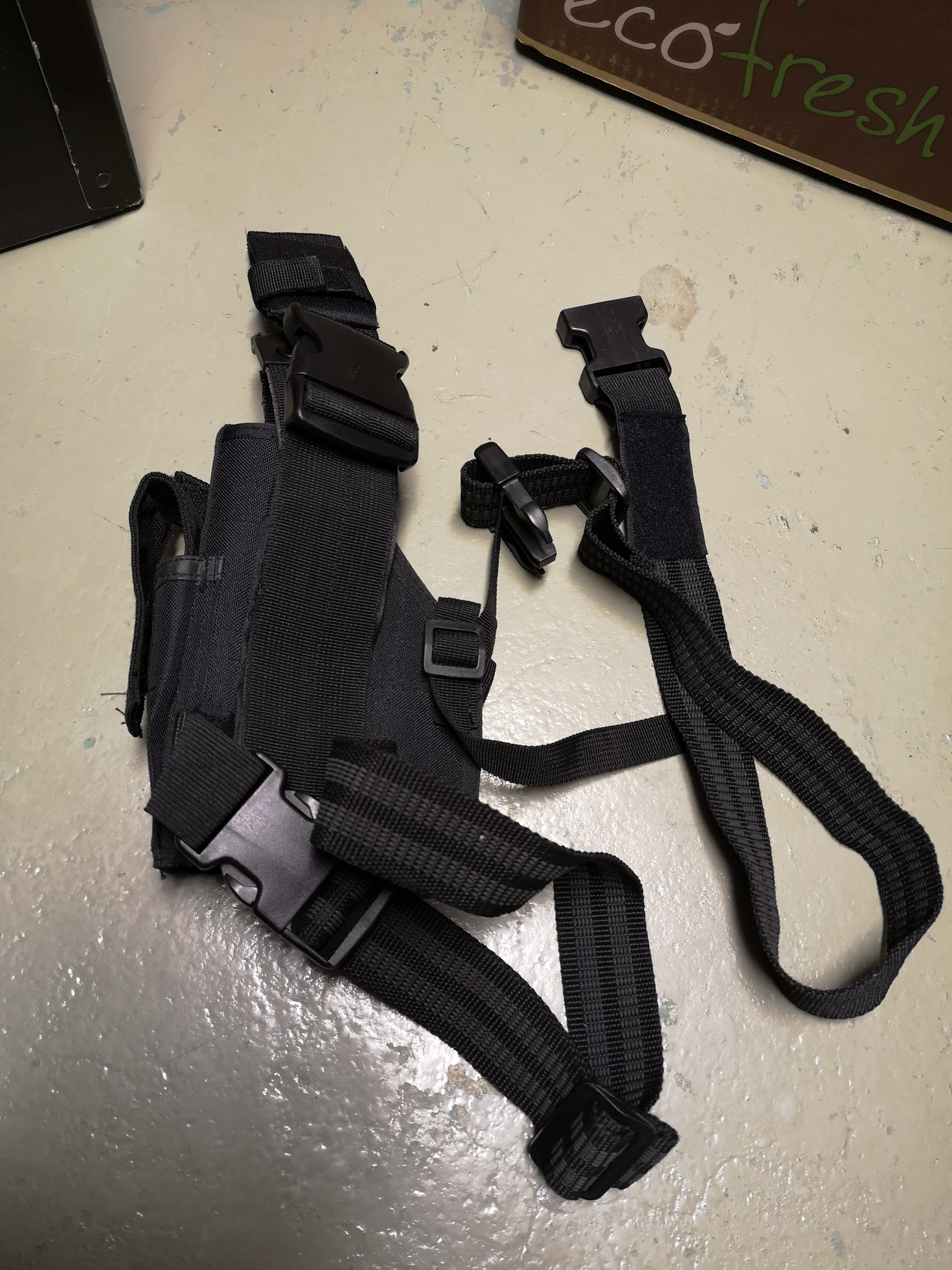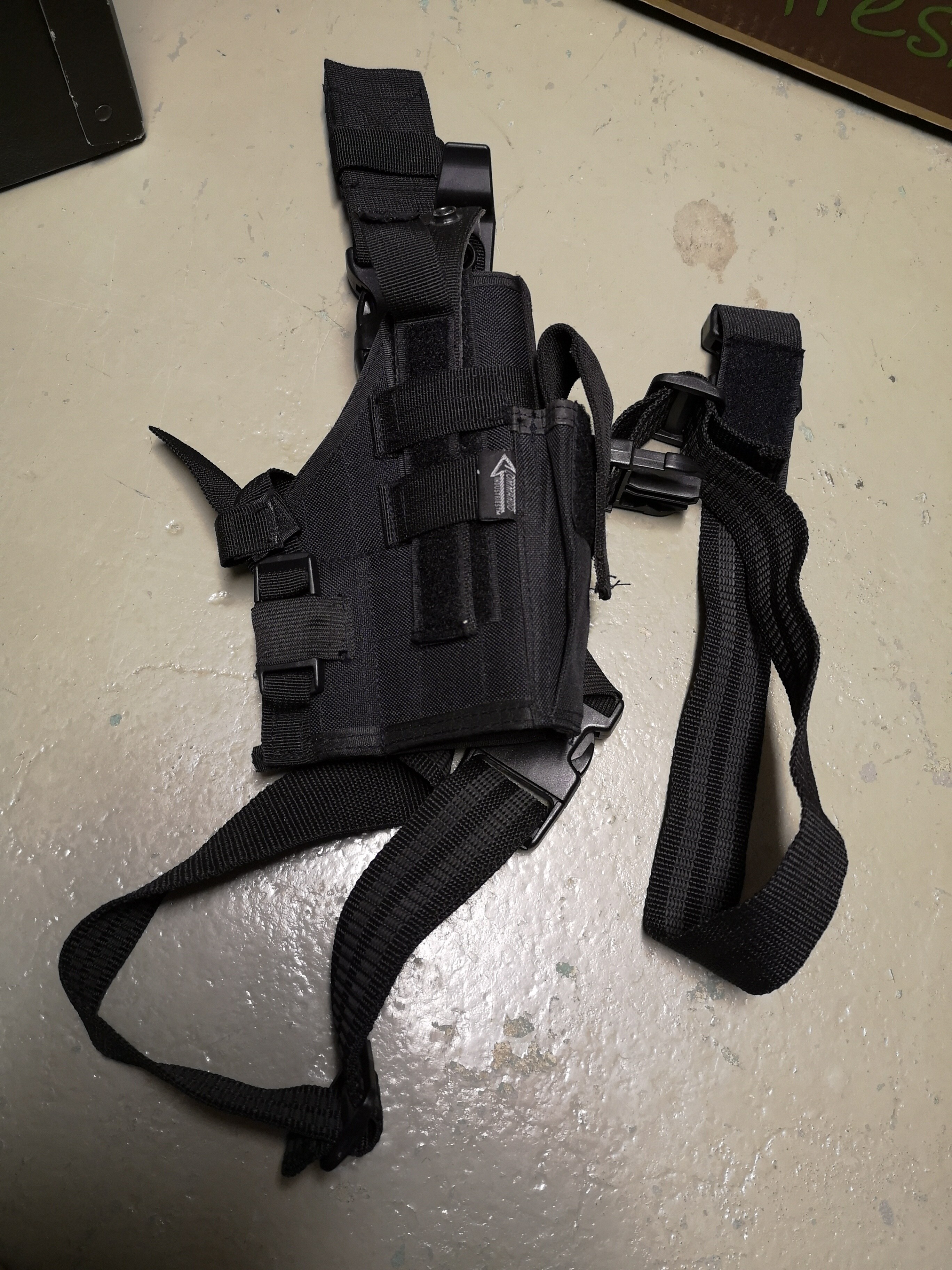 Två olika varianter av benhölster säljes. 250 kr för det översta i hårdskal med remmar. 100 kr för det nedre med remmar. 300 kr för båda två, frakt betalar köparen om de ska skickas.