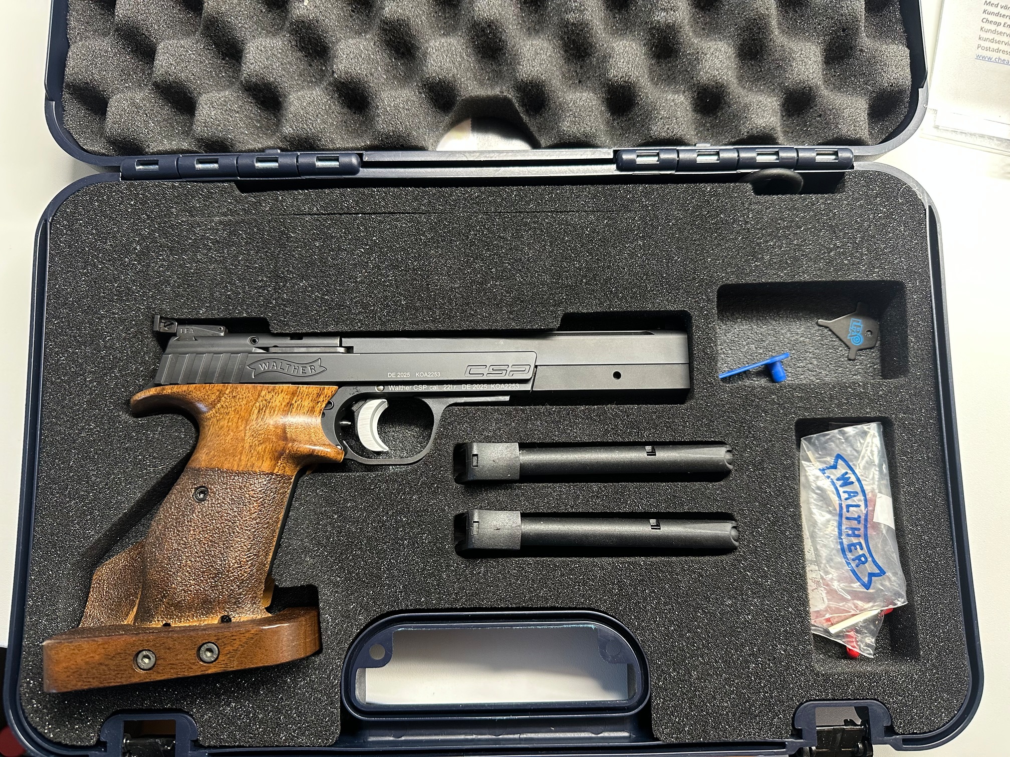 Säljer en nästan ny Walther som köptes ny i juli 2025 och har avlossat ca 1800 skott. Ingår 2 magasin och avtryckarsko från Osuma.