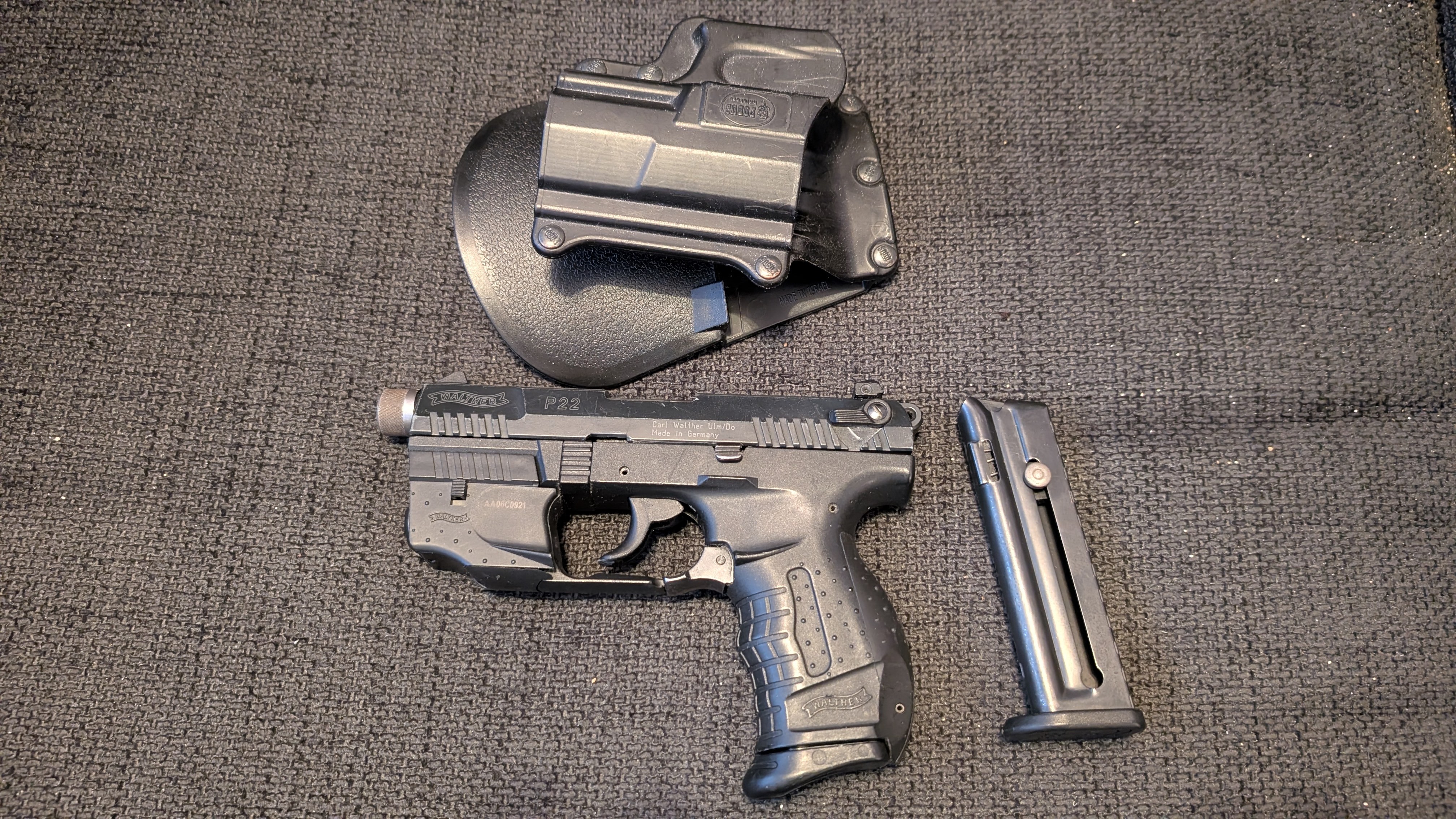 En Walther P22 (22lr) säljes. Pistolen har gängad pipa. Ingår med pistolen gör avtagbart lasersikte samt hölster. Pistolen har funnits hos mig i tio år men inte sett alltför mycket användning på senare år.