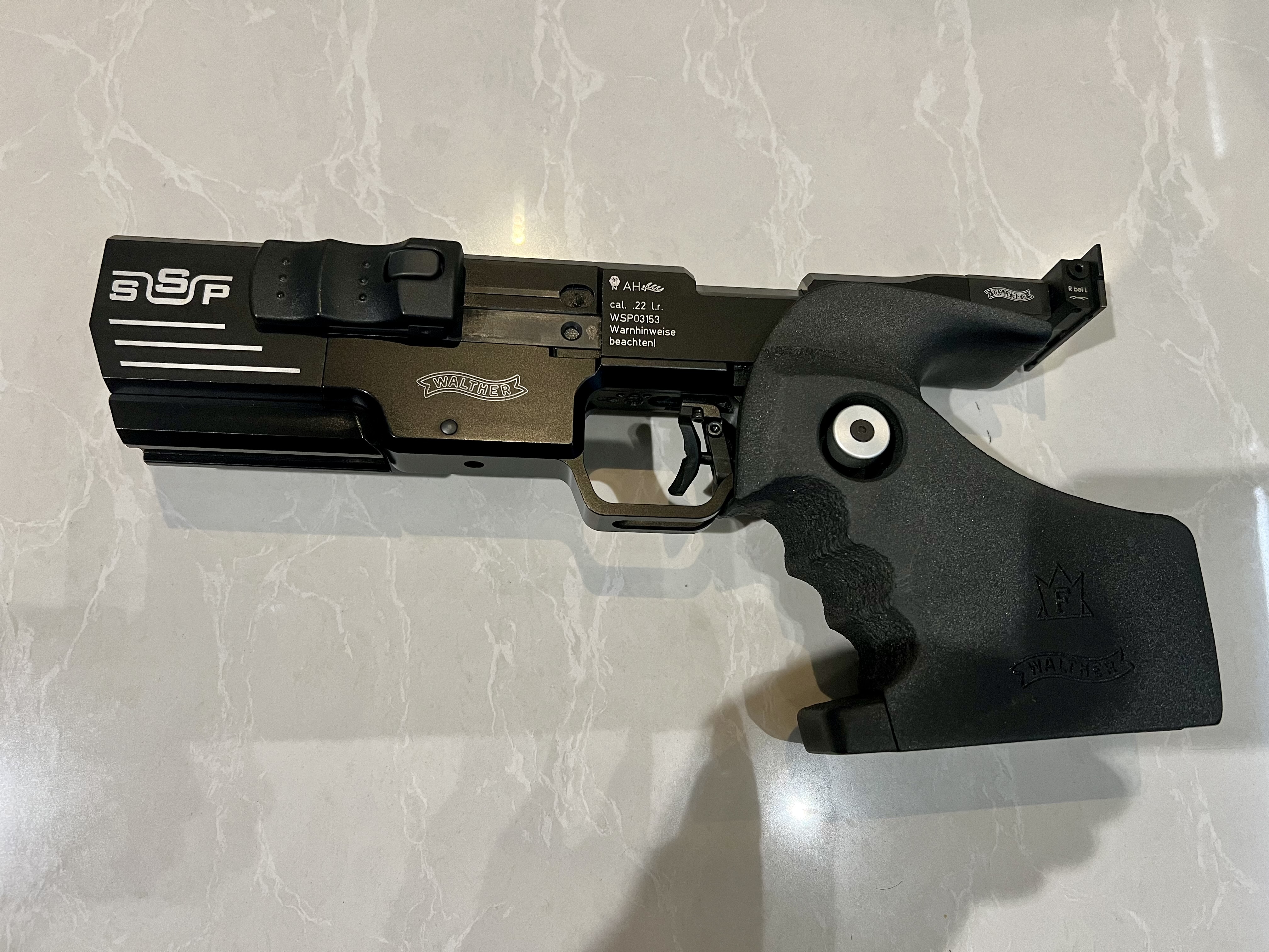 Walther SSP cal .22 i närmaste nyskick. Otroligt fin och väl omhändertagen. Säljes komplett med 2 6-skotts magasin samt standard tillbehör i original hårdplast väska.