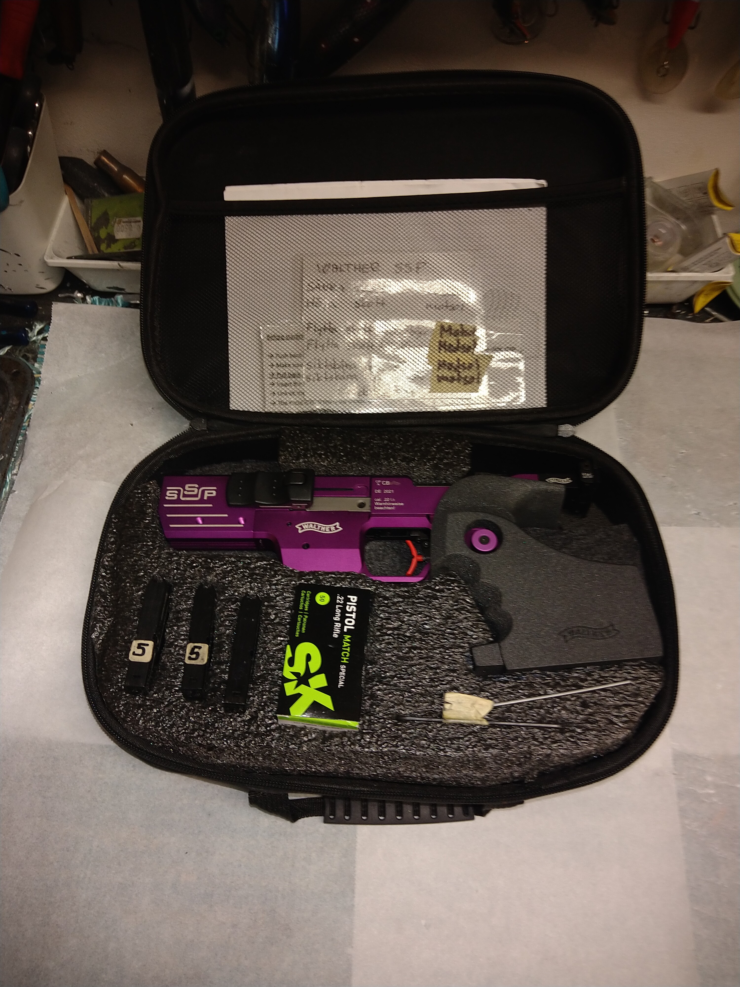 Då jag bestämt lämna 22 skyttet för annan skytte form så är denna Walther SSP -E till salu,uttagen -22 ,lite använd,3 magasin 5+5+6 skott, 2 st pipvikter varav en är aktiv(fjädrande) ,finns några reservdelar,nytt trycke -25 .stl M på kolven mkt fint skick,2 väskor . önskas mer info så skicka ett pm.